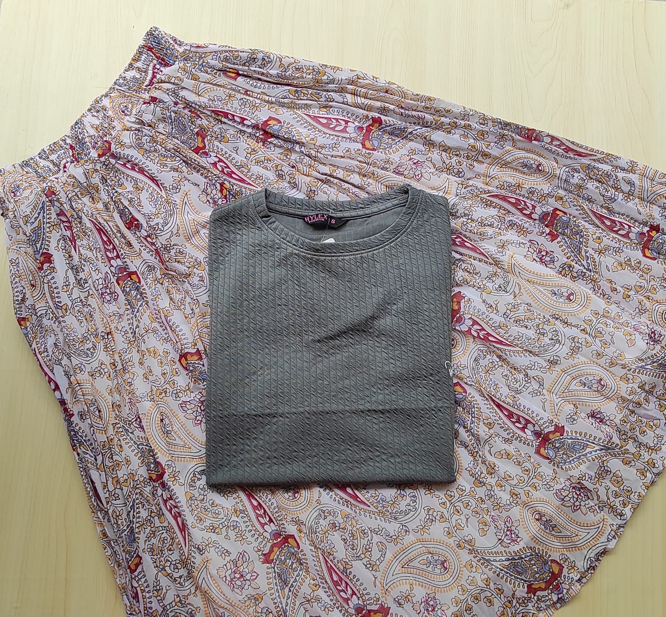 Solid tshirt and pleated skirt Combo