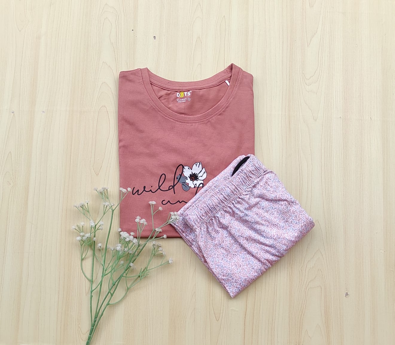 Solid tshirt and printed pant
