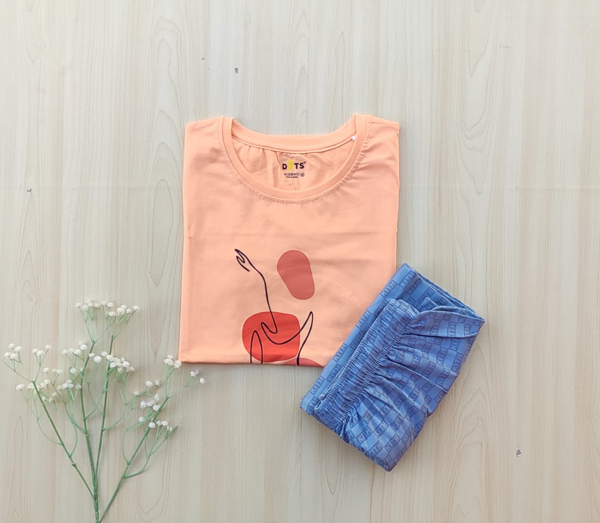 Solid tshirt and printed pant