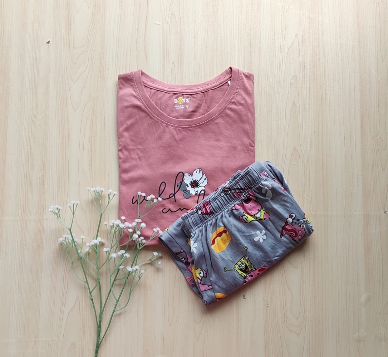 Solid Tshirt with pyjama