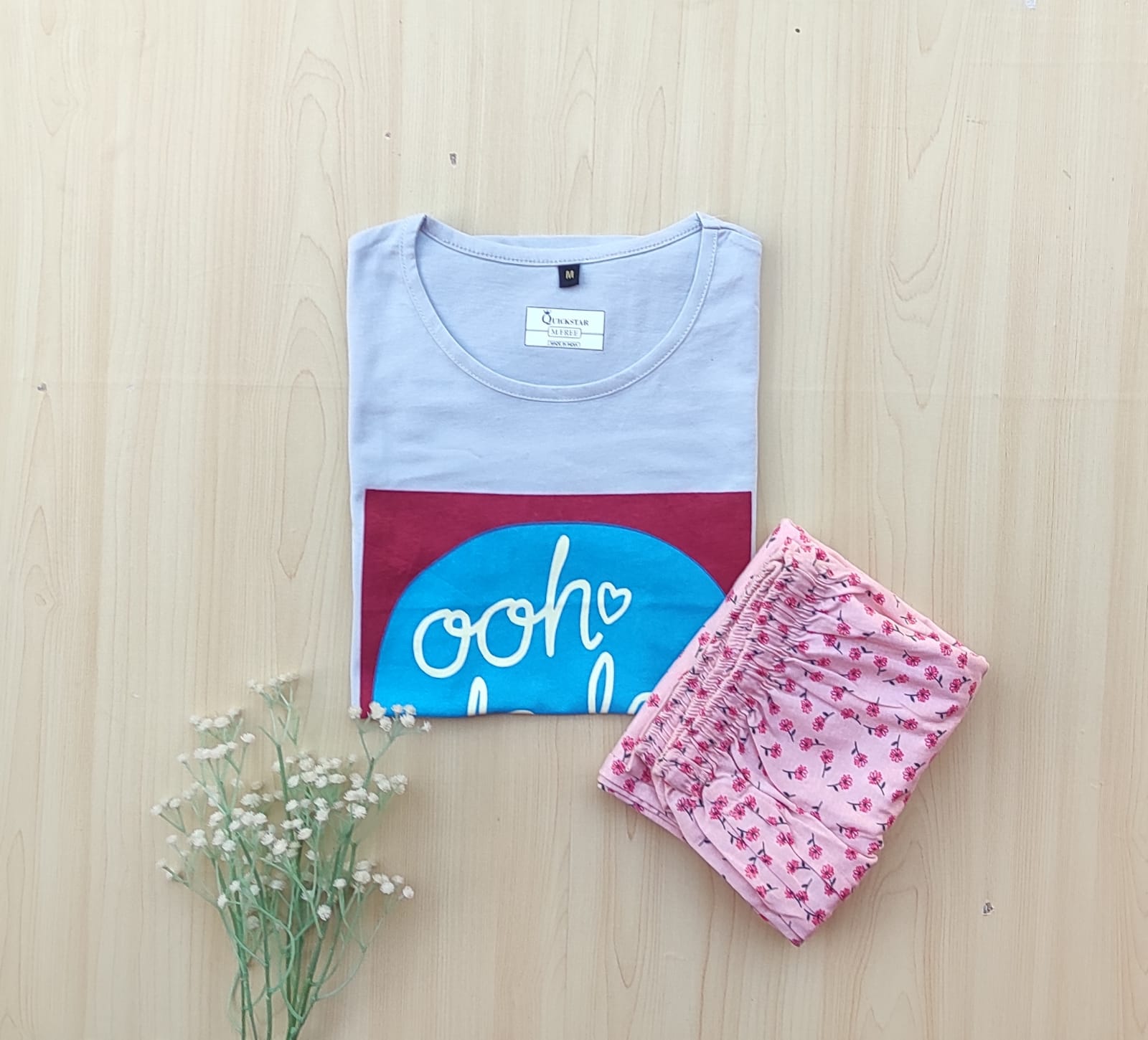 Solid Tshirt with pyjama