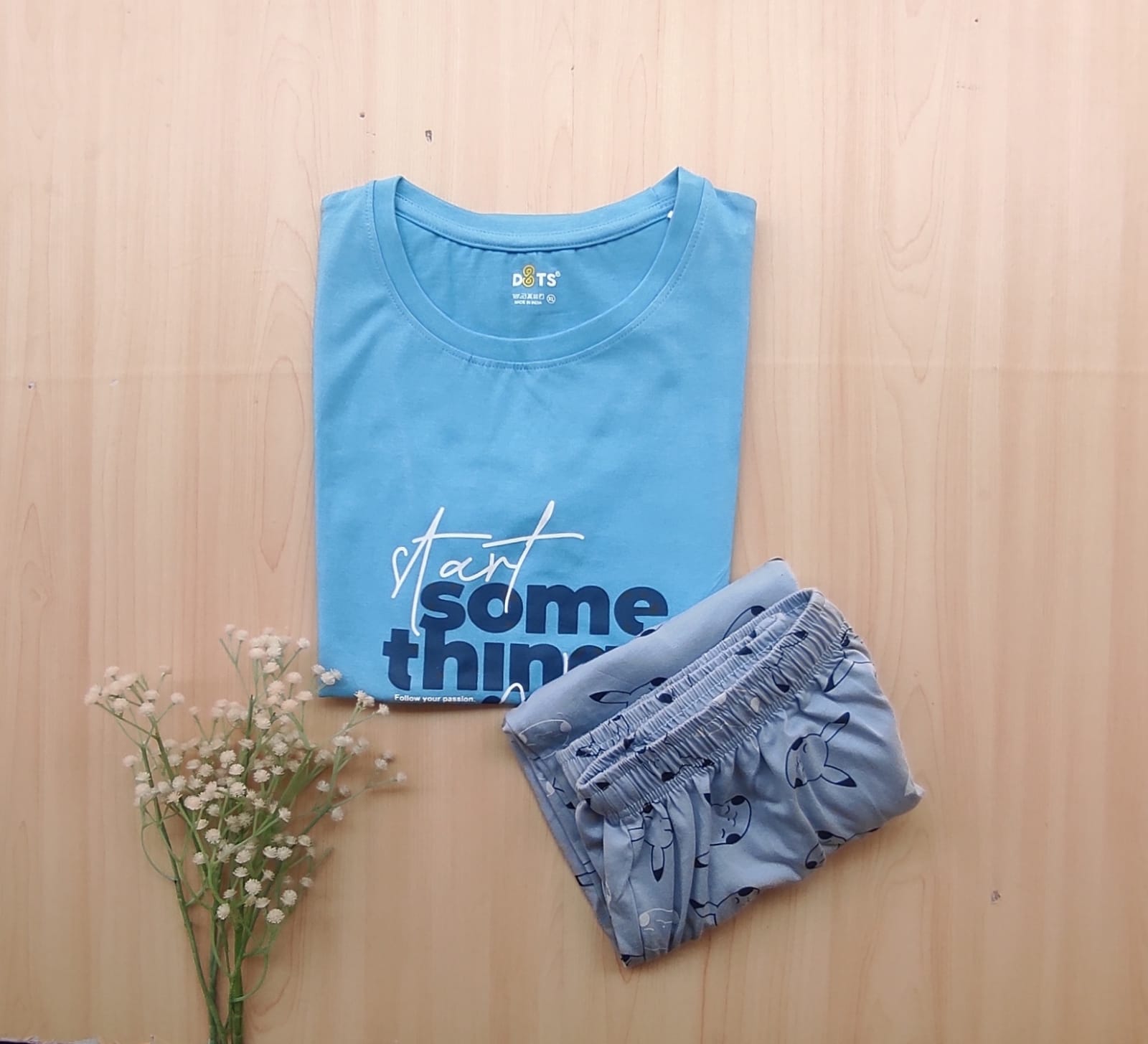 Solid Tshirt with pyjama