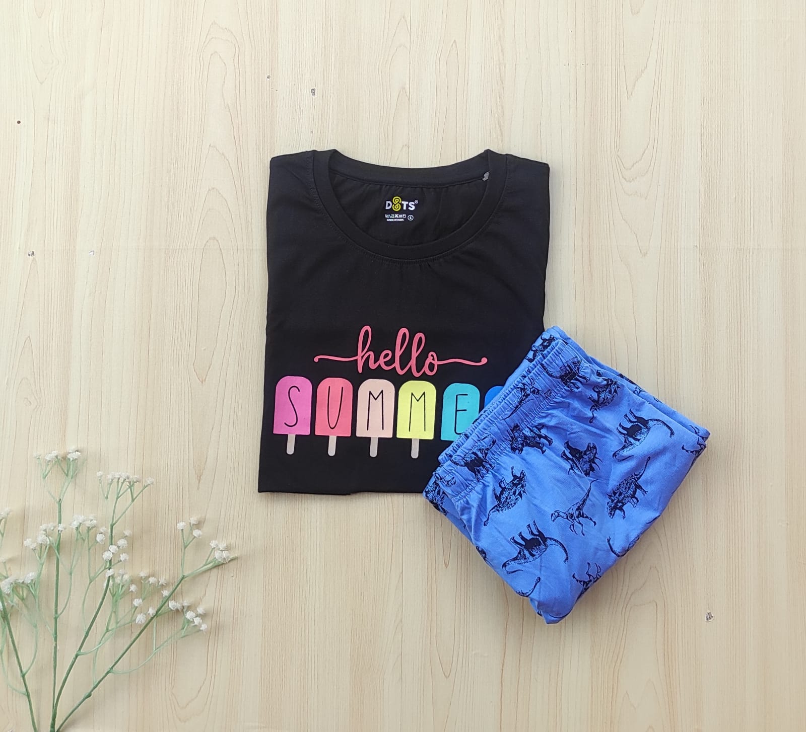 Solid Tshirt with pyjama