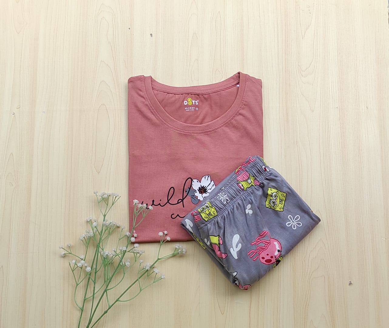 Solid Tshirt with pyjama