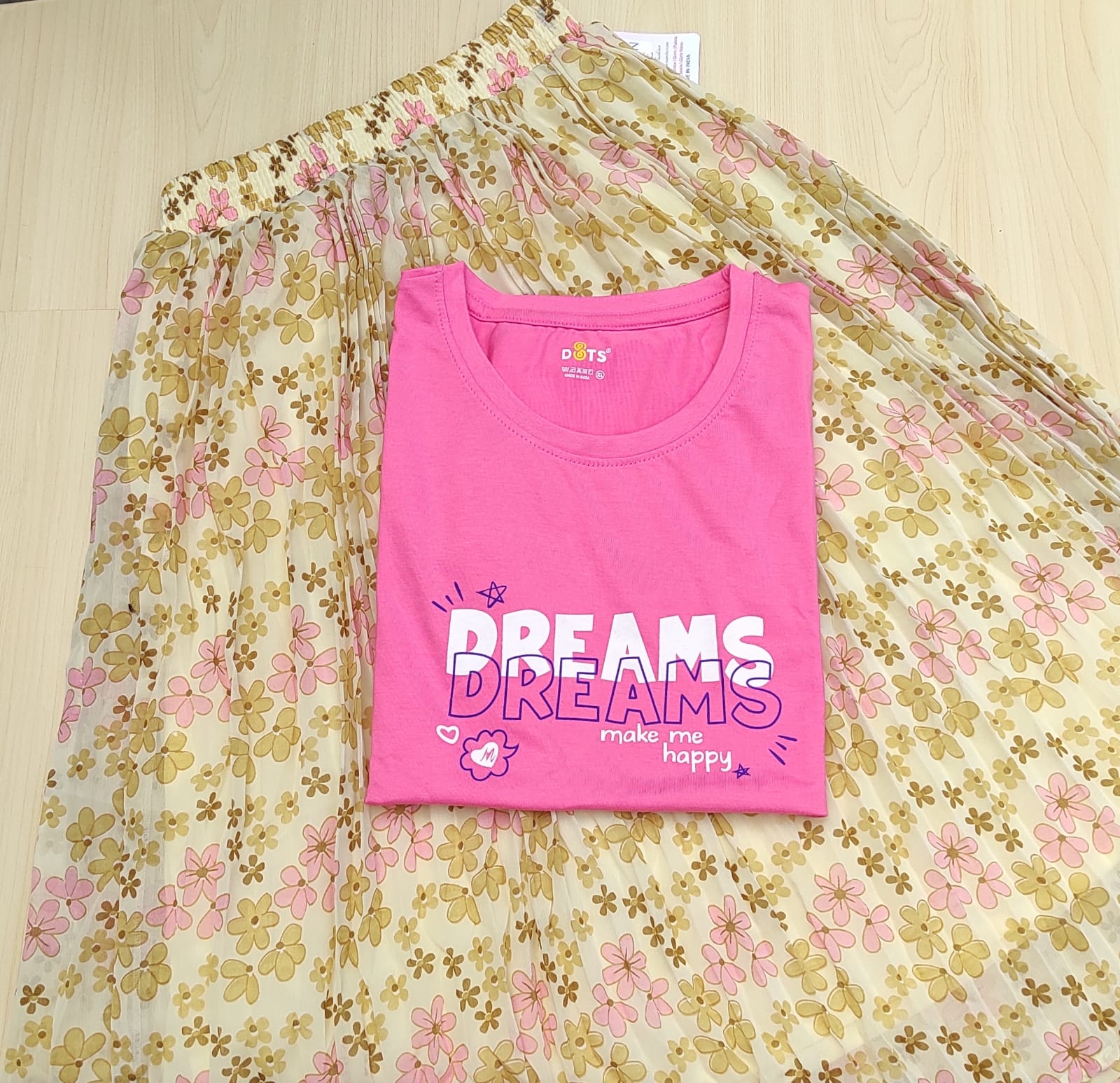 Solid tshirt and pleated skirt Combo