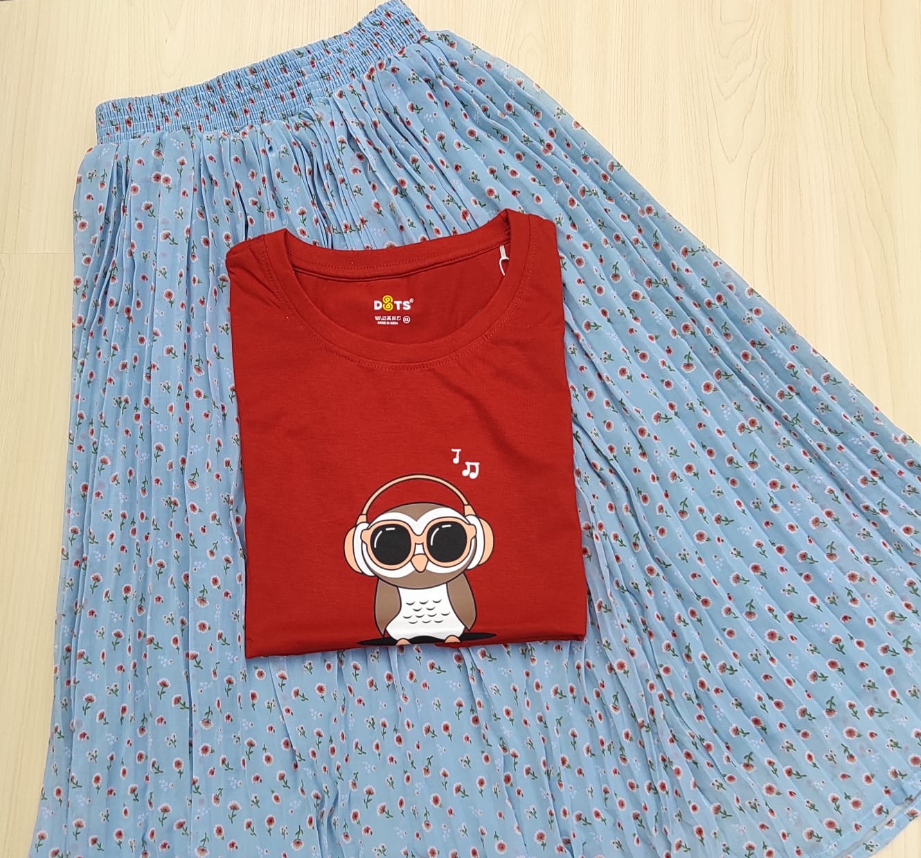 Solid tshirt and pleated skirt Combo
