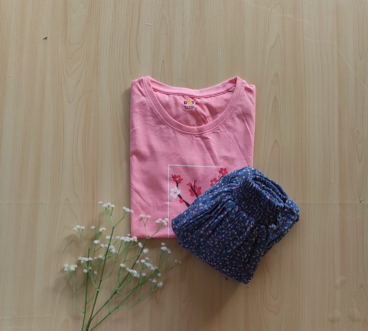 Solid tshirt and pleated skirt Combo