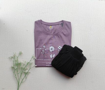 Solid tshirt and pleated skirt Combo