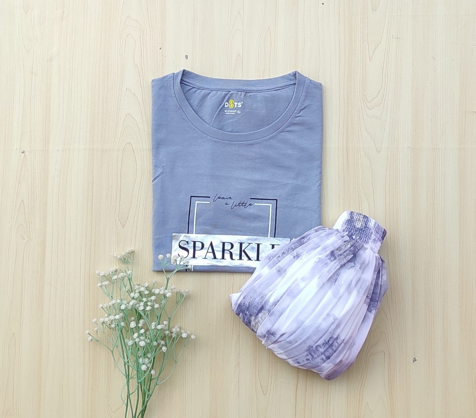 Solid tshirt and pleated skirt Combo
