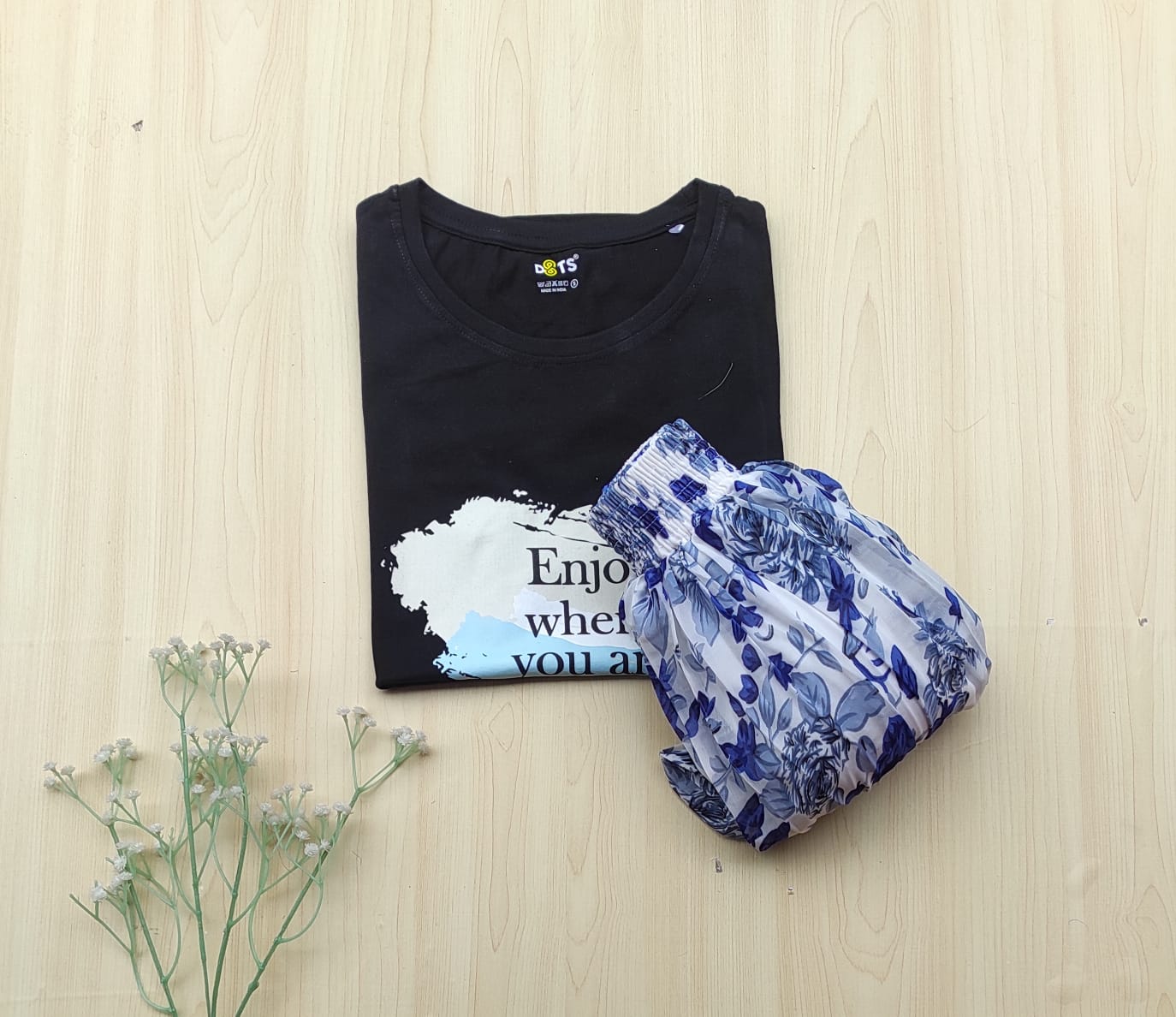 Solid tshirt and pleated skirt Combo
