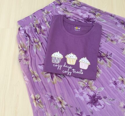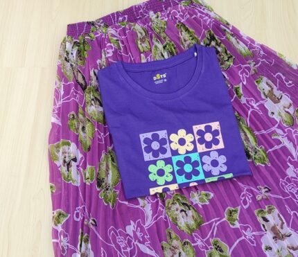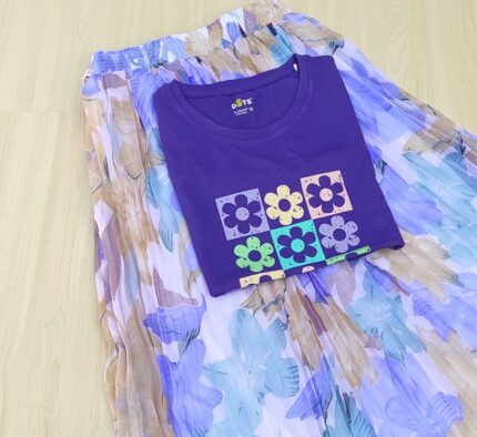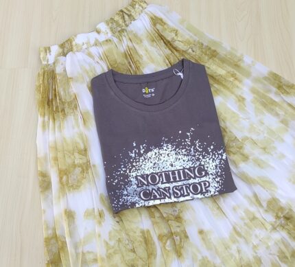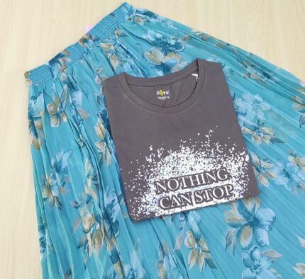 Solid tshirt and pleated skirt Combo